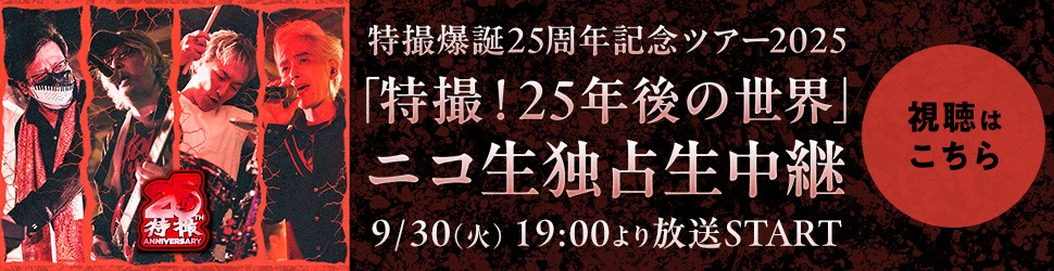 - “特撮爆誕25周年記念ツアー2025 特撮!25年後の世界”三柴物販のおしらせ→こちら